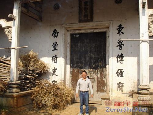 由于时间安排紧,我们在中午前拜别辉文等宗亲,赶车去下一个目的地--华城宗圣祠。通过多方打听,终于在华城找到了位于十字街四巷的宗圣祠(当地人称曾家祠)。由于之前电话联系好,华城的昭松宗亲(广新公系良甫公后裔)已经在祠门迎接我们我们。进入祠堂大门,昭松宗亲介绍了宗圣祠的历史,这里曾经是东征军政治部办公室旧址,1925年3月周恩来率领的东征军政治部就在这里办公,现为国家重点文物单位。宗圣祠修建落成于清朝光绪十七年(1891年)正月二十六日,是当地曾氏族人的合族总祠。祠门对联:东鲁传经府;南丰修史家。相传此联原为宋苏大文豪东坡手书,此为南丰原祠复制字。甚为可惜的是宗圣祠年久失修,加之文革惨遭破坏,现已经残破不堪,有的地方还有随时倒塌的危险,据闻当地政府不愿意出资维修,而曾家又没人牵头修缮,还真让人看了心酸,呜呼!